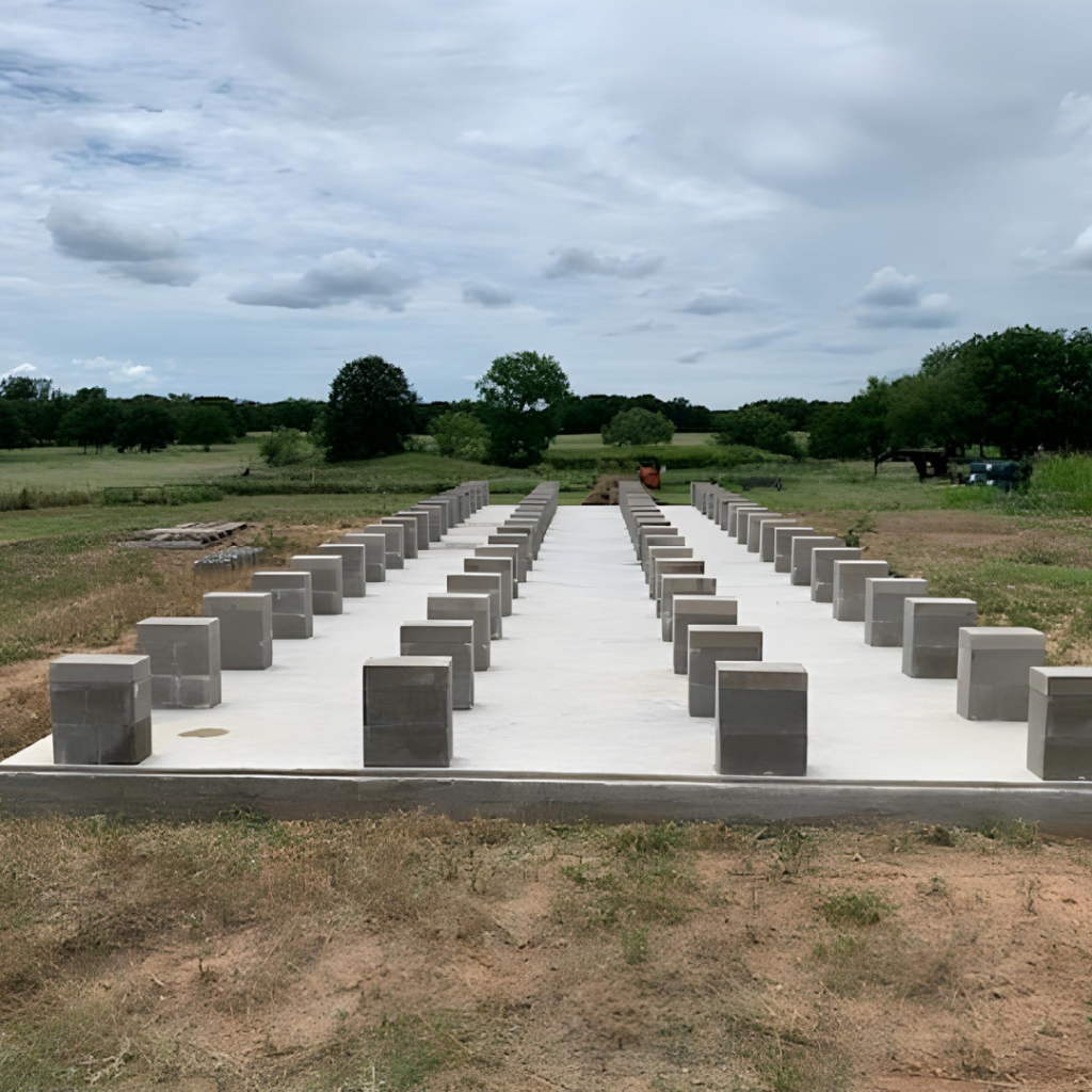 Concrete slab foundations provide exceptional stability and are suitable for all unit sizes in regions where approved as a foundation type. This modular foundation is entirely site-specific, requiring consultation with a foundation engineer to determine proper pad depth and footer requirements based on your soil conditions and local codes. The concrete slab must be reinforced as a house slab with adequate footers – unreinforced slabs or improper footers can lead to structural support issues over time that are not covered under your modular warranty.